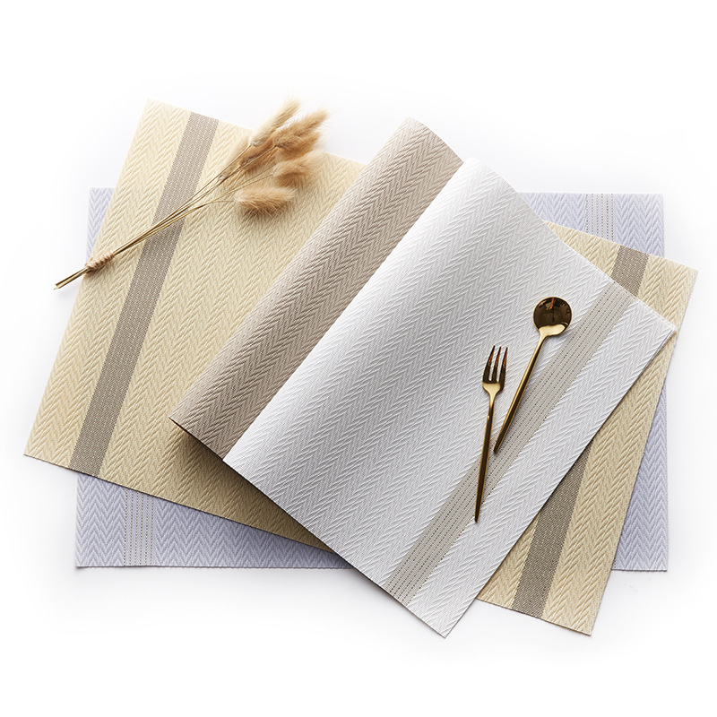 Nordic Insulated Placemat PVC Waterproof Oilproof Table Mat Hotel Restaurant Anti-slip Double Stripe Western Placemat Wholesale.